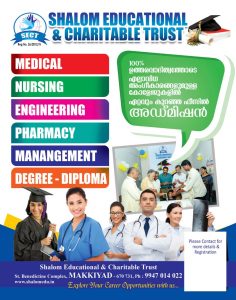 Shalom Educational and Charitable Trust helps you to find admissions in reputed colleges, Schools and Universities all over India. Our Head office is at Mandya, Karnataka with branches at Mananthavady and Kannur in Kerala.